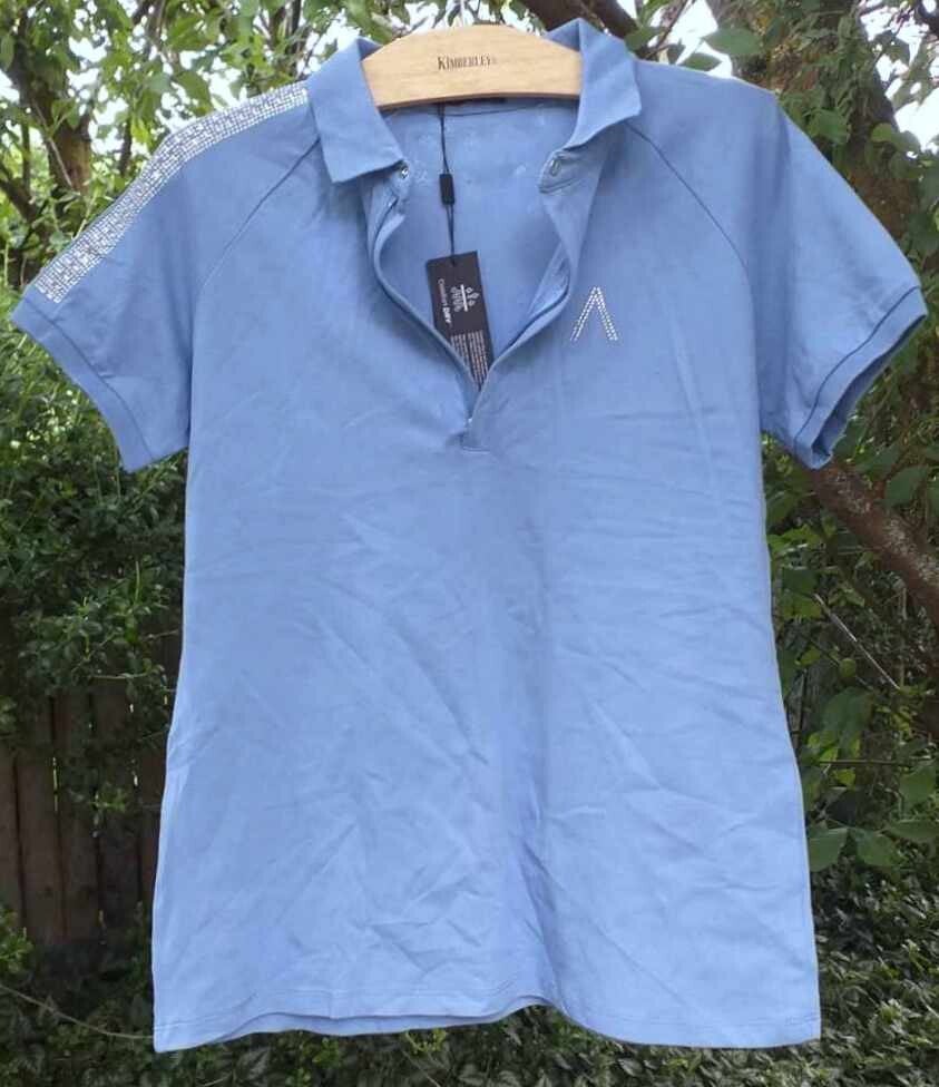 "NEW" DUBLIN Blue Godiva diamanté polo - M